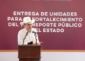 La entrega se llevó a cabo en el estacionamiento del Bosque Urbano La Sauceda, en el marco del evento “Entrega de Unidades para el Fortalecimiento del Transporte Público en el Estado”, donde también se otorgaron unidades a diversos municipios de la entidad.