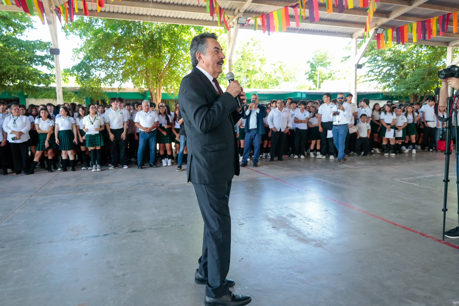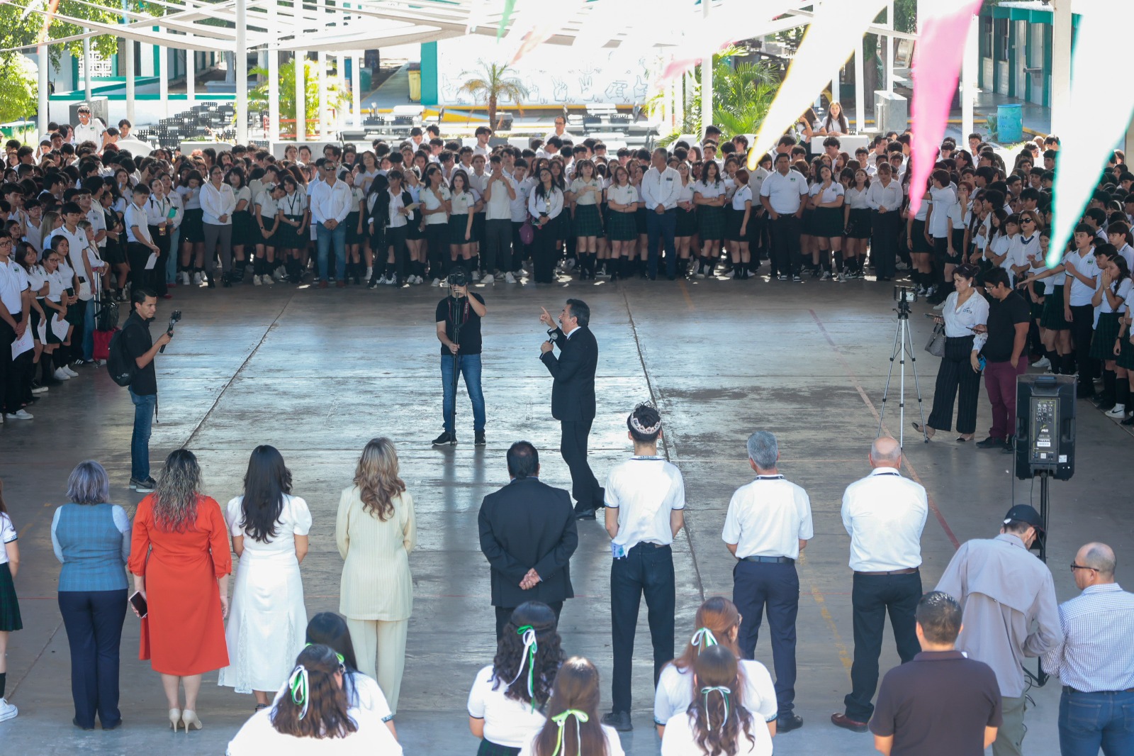 “Todas y todos ustedes hoy están iniciando un nuevo ciclo en su aprendizaje y hay mucho que conocer todavía, mucho que aprender, pero no basta con solo aprender y conocer, sino que hay que comprender lo que estamos aprendiendo, porque de nada sirve un dato en la cabeza, sino entendemos que es lo que quiere decir, por eso es muy importante que siempre estén abiertos al conocimiento, a aprender y comprender, eso es lo que están haciendo en su educación y al iniciar este nuevo ciclo, hoy dan paso a una nueva etapa en su conocimiento, por eso las y los felicitó”, expresó Lamarque Cano durante su mensaje a los estudiantes.