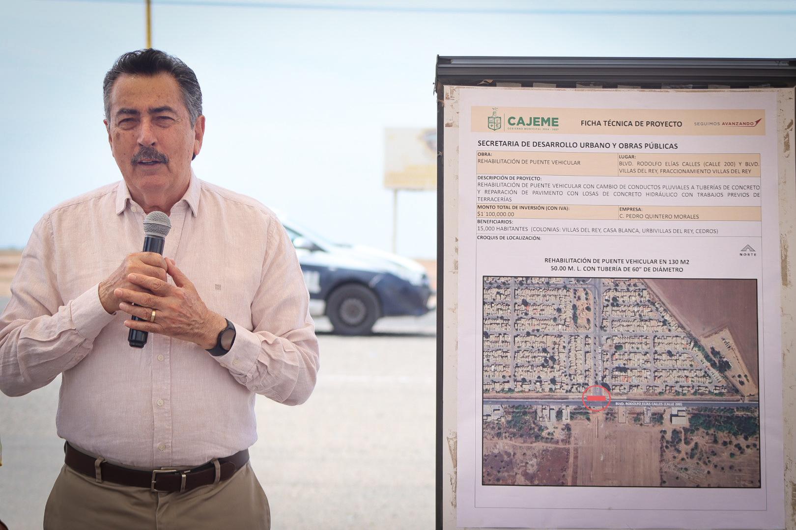 Para beneficiar a alrededor de 15 mil habitantes de las colonias Villas del Rey, Casa Blanca, Urbivillas del Rey y Cedros, el Presidente Javier Lamarque, dio el banderazo de inicio a los trabajos de rehabilitación del puente vehicular ubicado en la intersección de la avenida Rodolfo Elías Calles y Boulevard Villas del Rey.