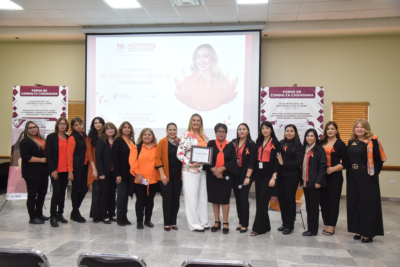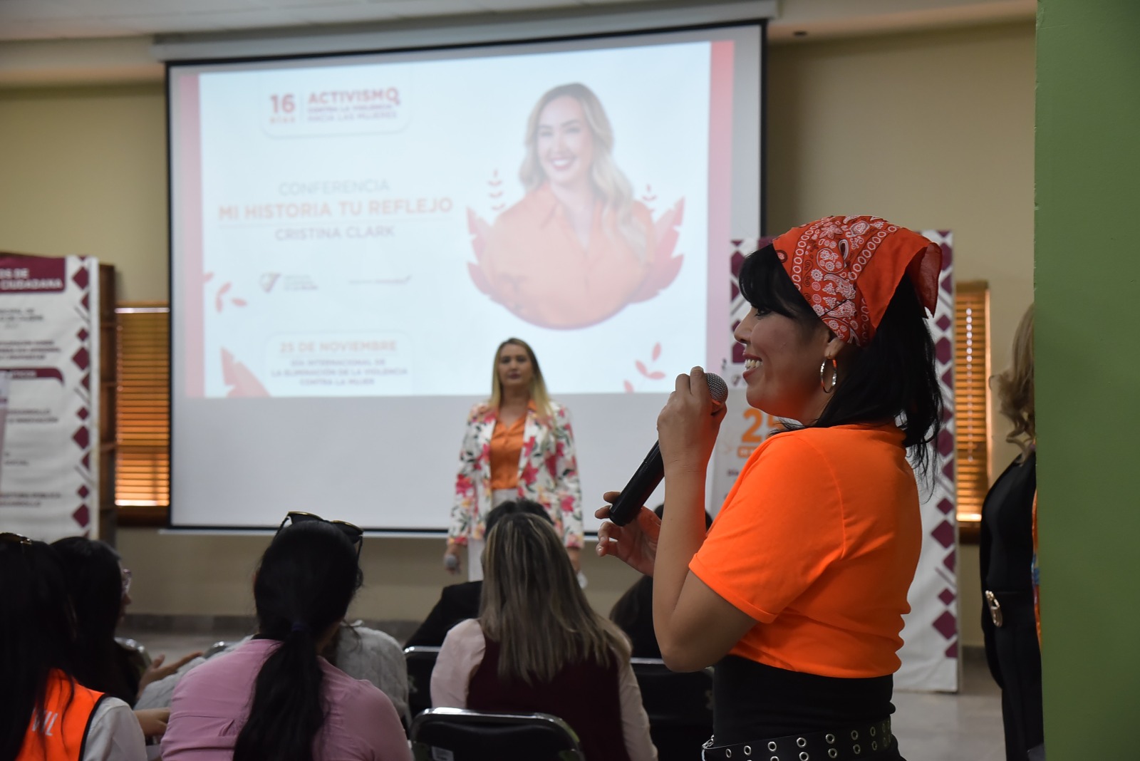 “Es de reconocer el inicio de 16 días de trabajo para fortalecer entre nosotras la erradicación de la violencia hacia las mujeres, agradeciendo a quien nos presentará su libro titulado Mi historia tu Reflejo, a la maestra Cristina Clark, a quien tengo el gusto de conocer desde hace algunos años, por ello sé que es una mujer que escribe con el alma, con el corazón y este es el quinto libro que escribe y que, seguro, ilustrará nuestras vidas con su exposición”, manifestó Ramos Barba.