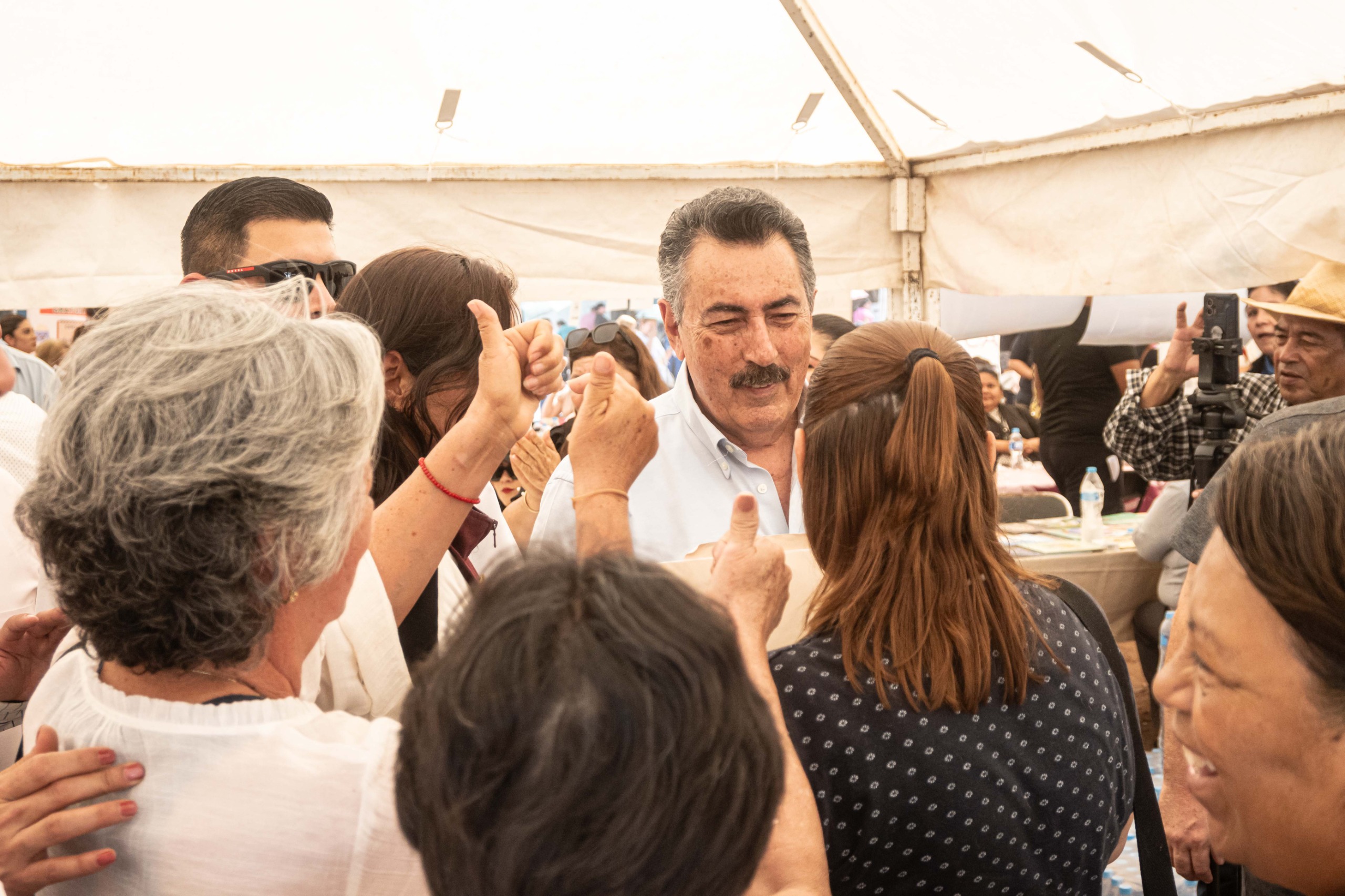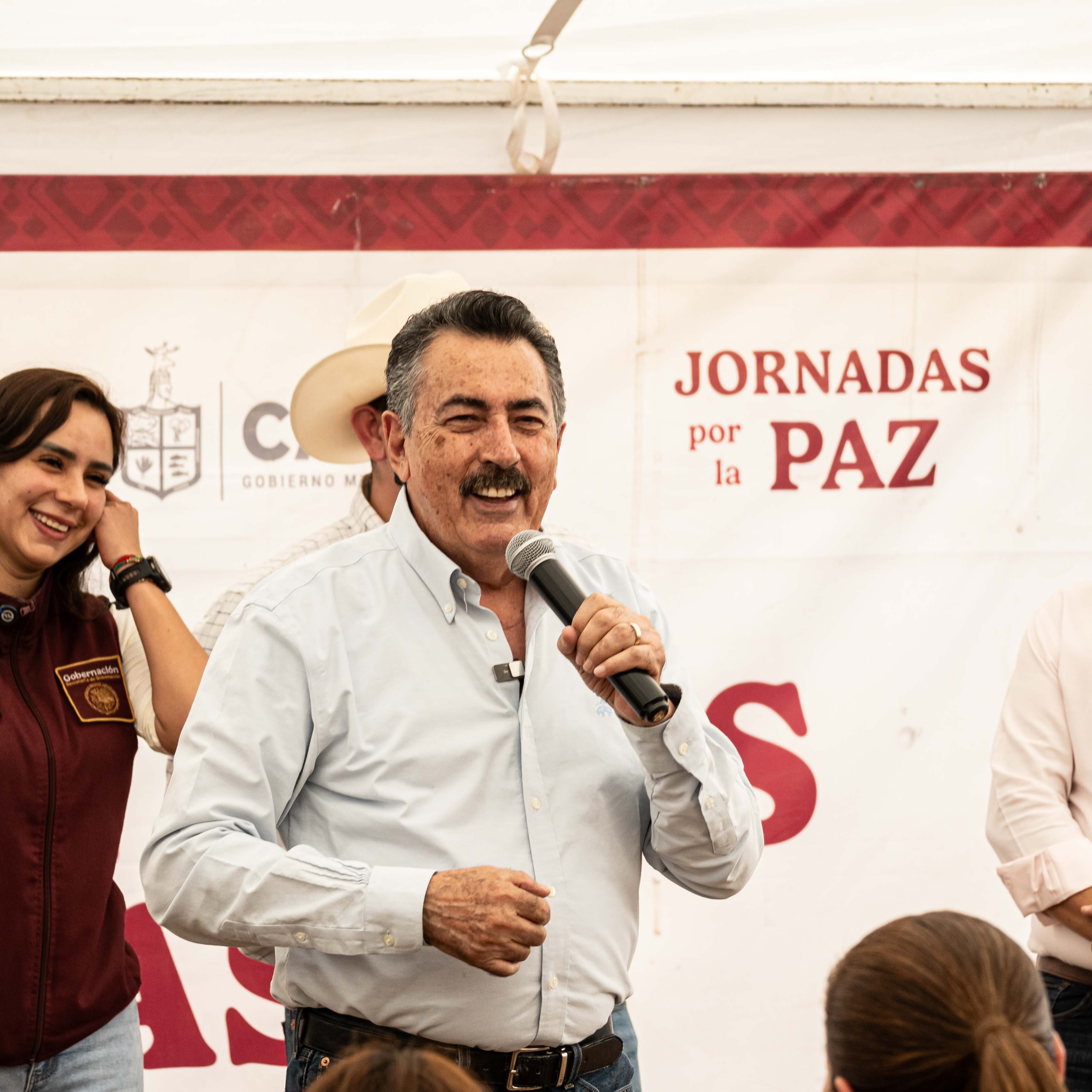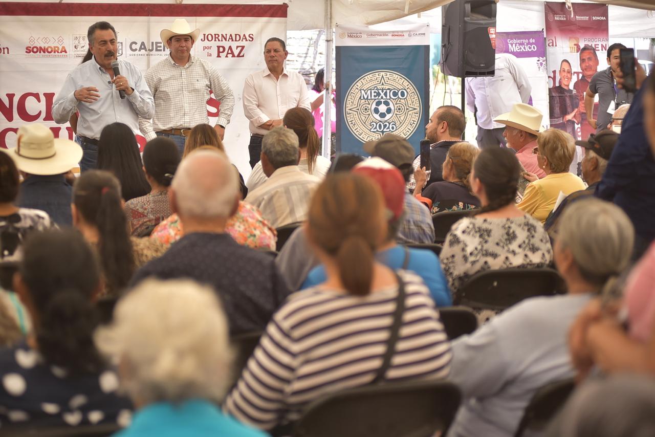 Acompañaron al Alcalde Arely Rojas, representante de la Secretaría de Gobernación; Marco Antonio Valencia, Director de General de Vinculación del Estado; Alejandro Ibarra, Secretario del Bienestar en Cajeme; Claudia Santacruz, Directora de DIF Cajeme; entre otros.