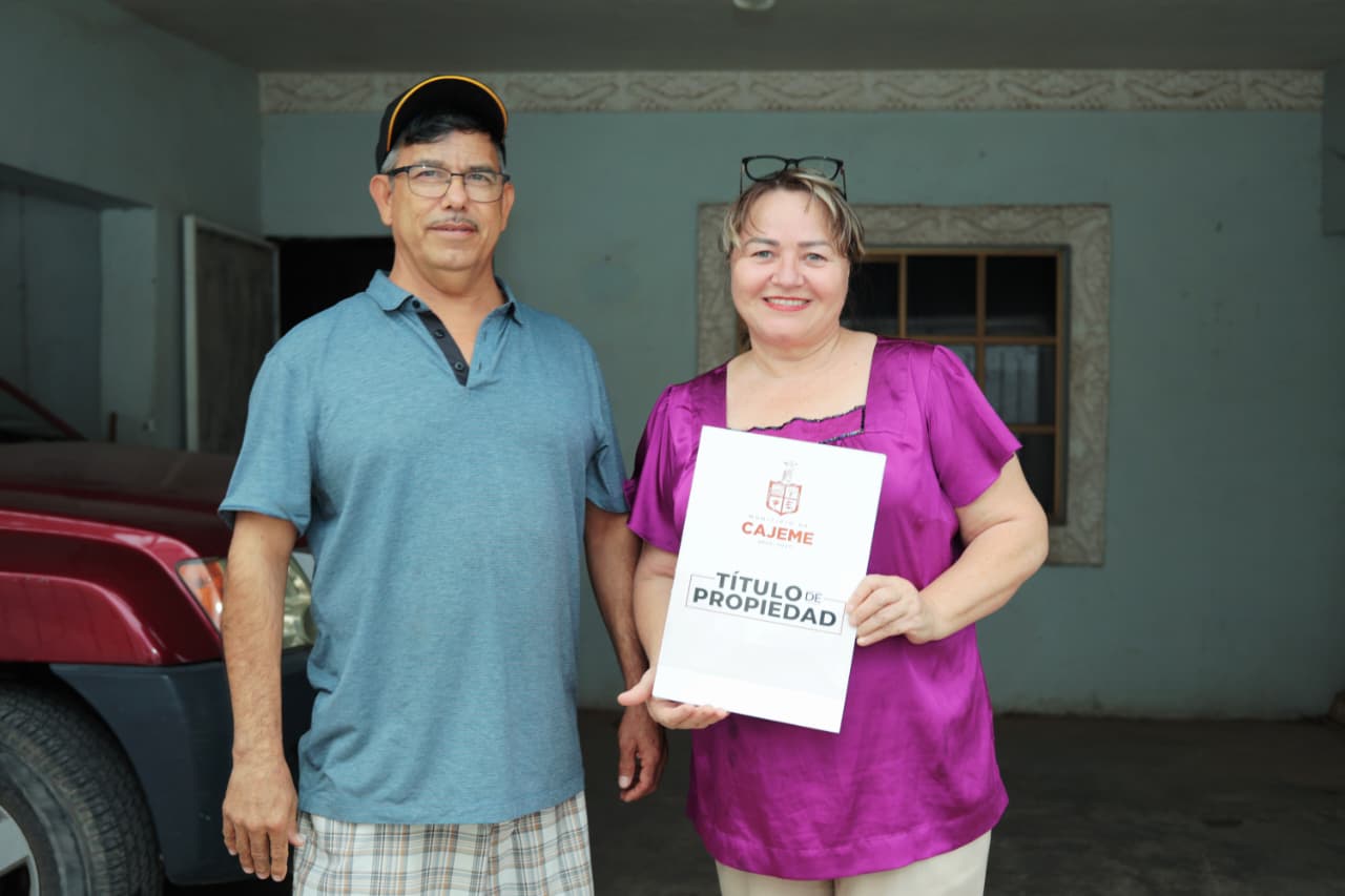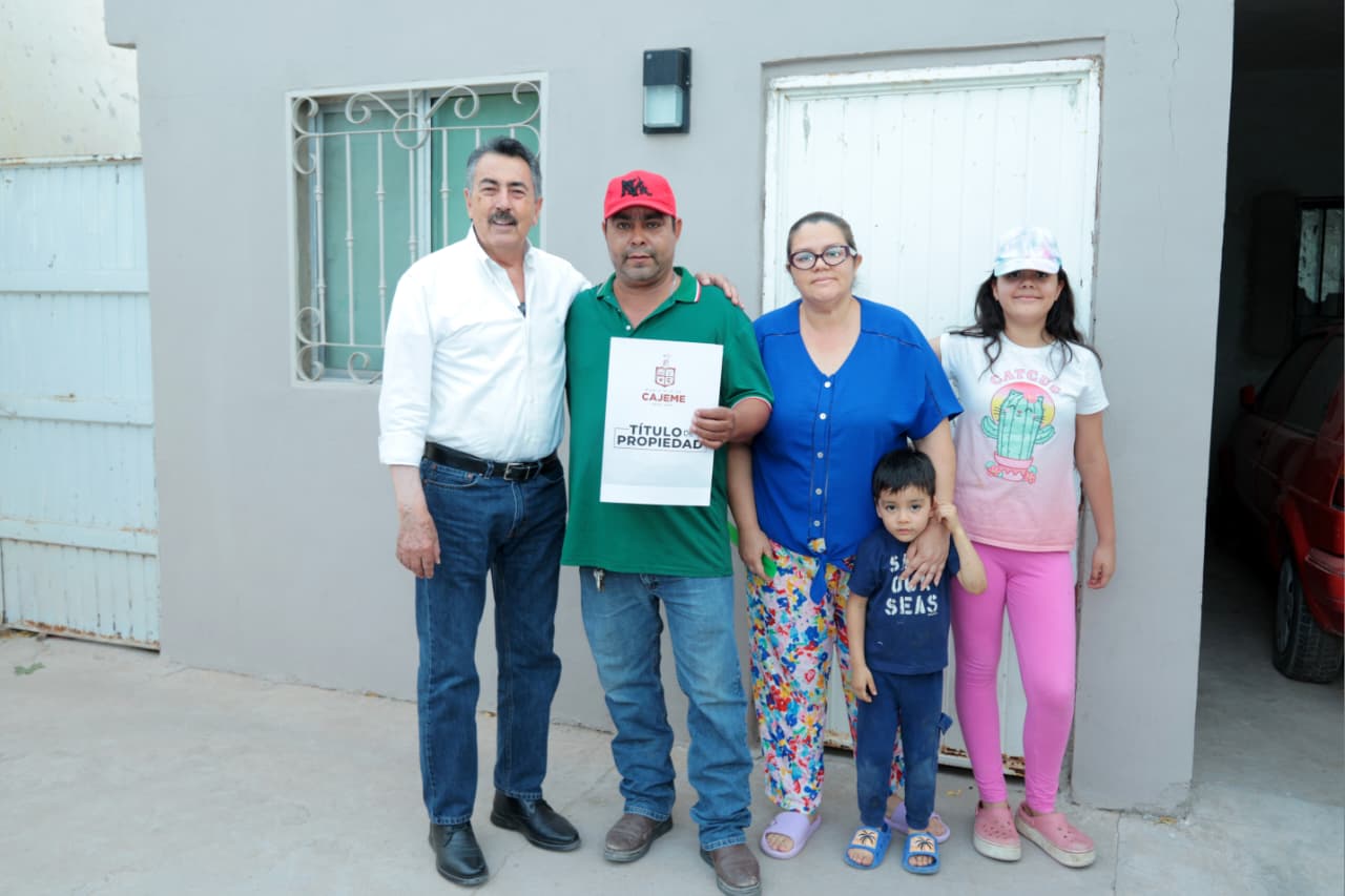 Tras más de 20 años de espera en un acto que llevó tranquilidad y alegría a varias familias, el Presidente Municipal de Cajeme, Javier Lamarque, realizó la entrega directa de títulos de propiedad a cuatro hogares de la colonia Cuauhtémoc, brindándoles finalmente la certeza jurídica sobre sus viviendas.