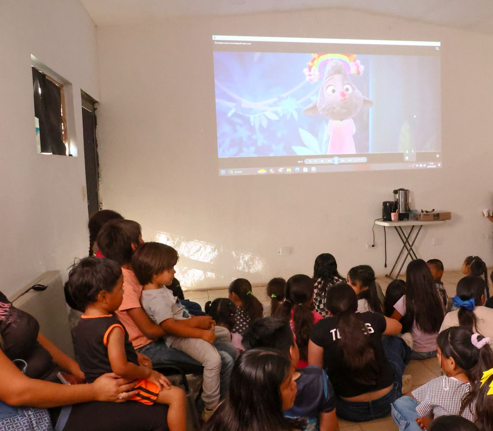 Durante la jornada, también se realizaron actividades recreativas para las niñas y niños asistentes, incluyendo la proyección de una película, además de la entrega de dos balones para fomentar el deporte y la sana convivencia.