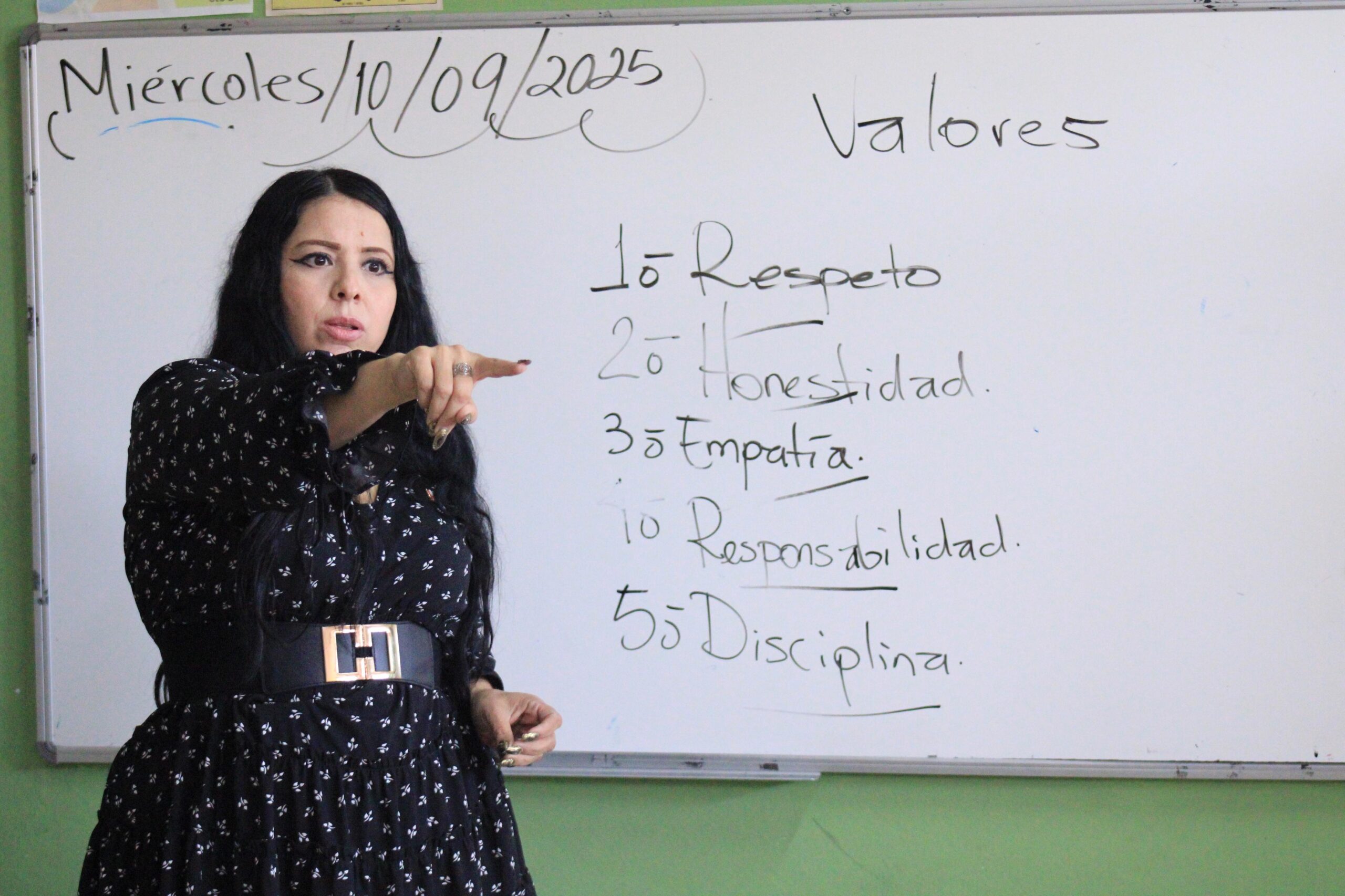 María Cristina Pérez Valenzuela, Subdirectora de Valores Cívicos, al emitir la charla explicó que esta actividad busca acercar a las y los estudiantes al conocimiento de los valores, de manera que puedan aplicarlos en su vida diaria y crecer con bases sólidas para su desarrollo personal y social.