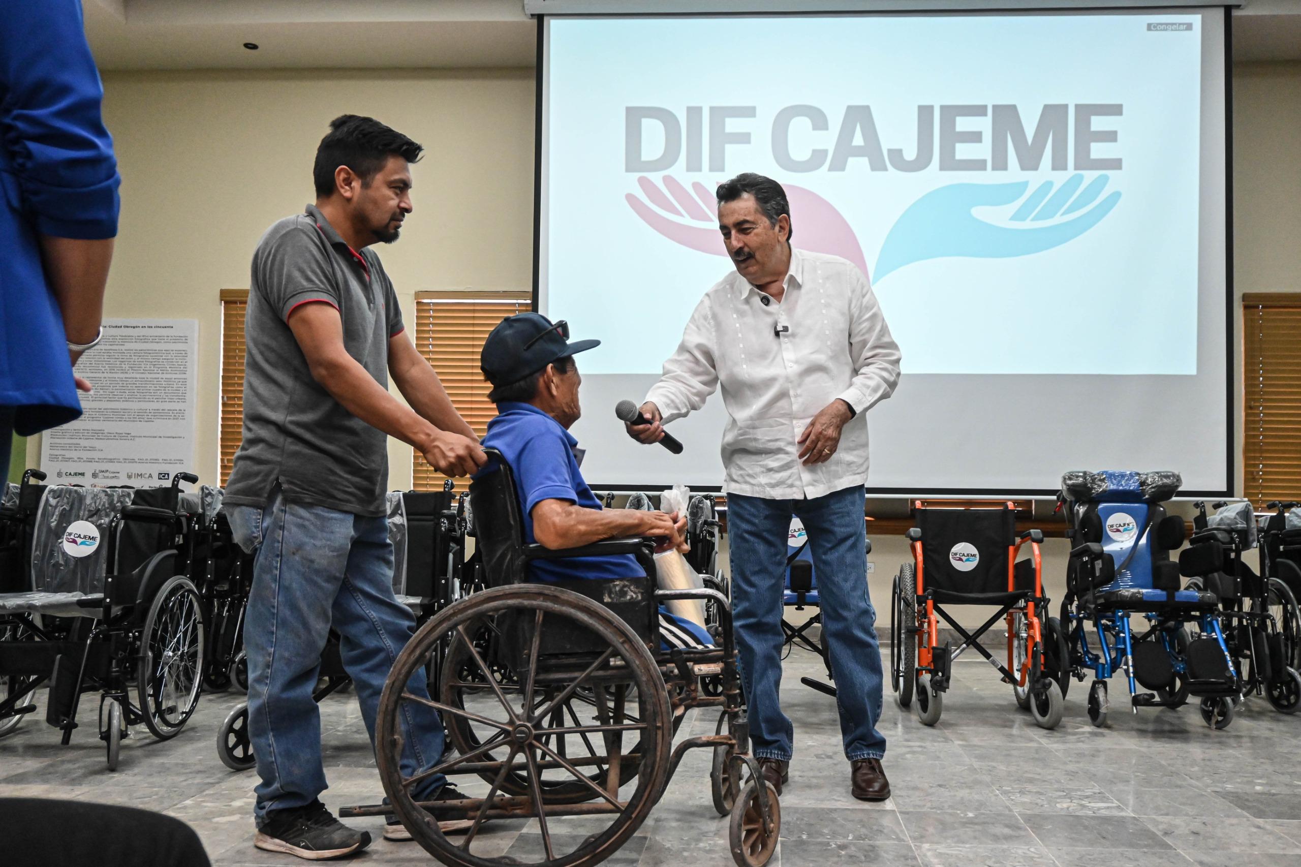 Con el firme compromiso de seguir impulsando acciones que fortalezcan la inclusión y el bienestar social, el Presidente Municipal de Cajeme, Javier Lamarque Cano, encabezó la entrega de 40 sillas de ruedas para adultas y adultos, una silla infantil y una silla PCI (parálisis cerebral infantil) a personas en situación de vulnerabilidad, a través del Sistema DIF Cajeme.