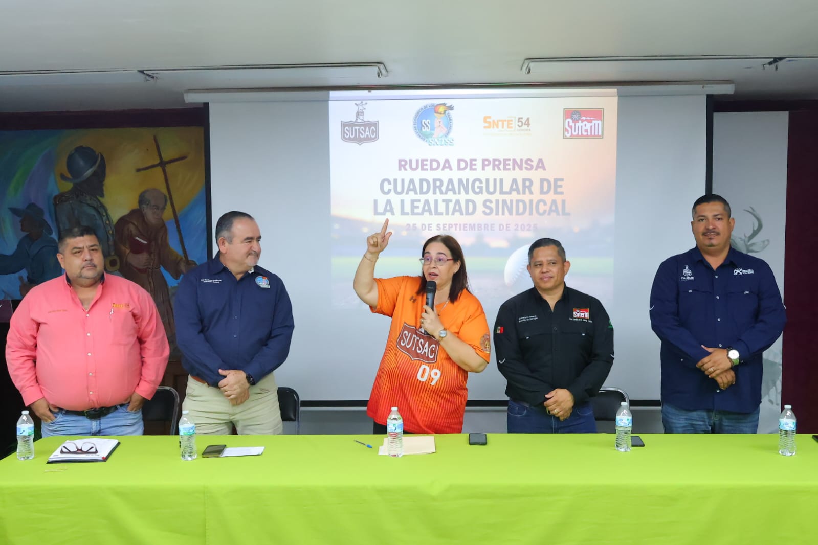 En la rueda de prensa, participaron los Secretarios Generales de la Sección 54 del SNTE, SUTERM Sección 23 de Ciudad Obregón y SNTSS Sección XIII Sonora; Jesús Javier Ceballos, Alonso Castillo y Joel Cárdenas, de manera respectiva.