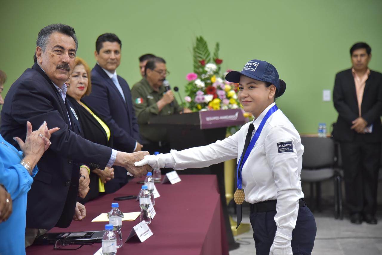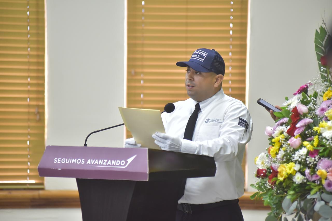 En su intervención, el Director de la Academia de Policía Municipal, Octavio Quintero Valenzuela, reconoció el esfuerzo de las y los cadetes, destacando que su formación no solo se basa en habilidades operativas, sino también en valores fundamentales. “Formamos mujeres y hombres comprometidos con la honestidad, el respeto, la responsabilidad y el sentido del deber. Han demostrado estar a la altura de este compromiso”, afirmó.